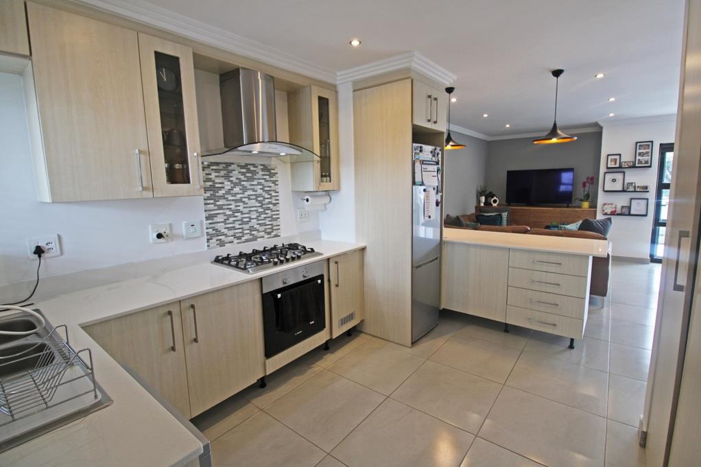 Open plan living with a huge kitchen boasting a gas stove, modern finishes, space for 3 undercounter appliances and a single door fridge!