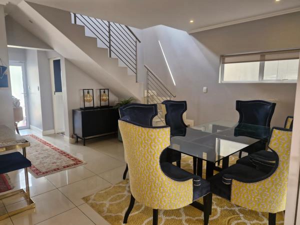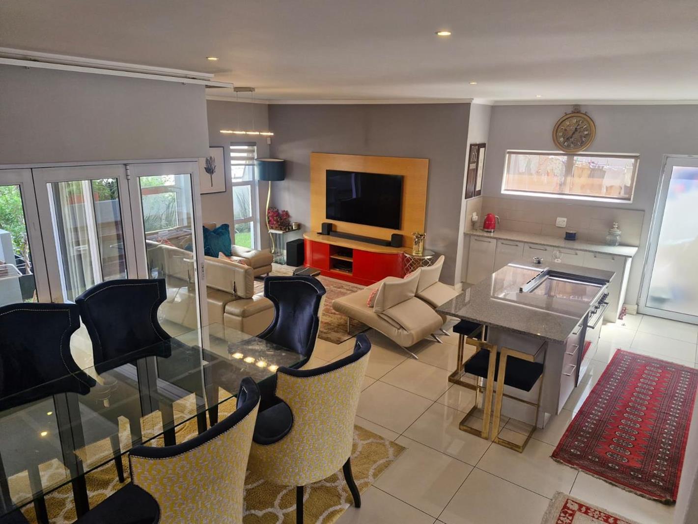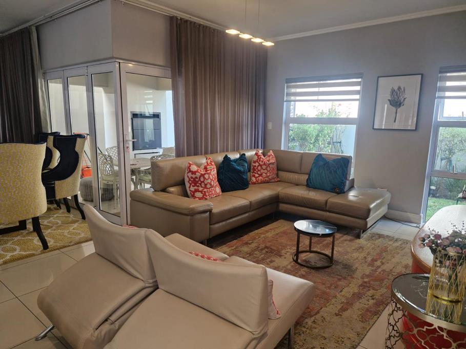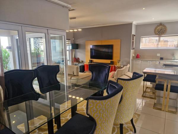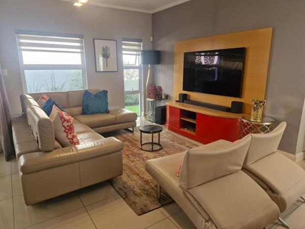 Move straight into this sleek cluster which offers 2 reception areas that open with glass stacking doors onto the undercover patio with a braai, water feature with seating around and a garden