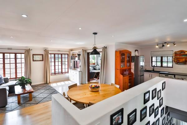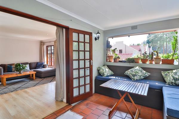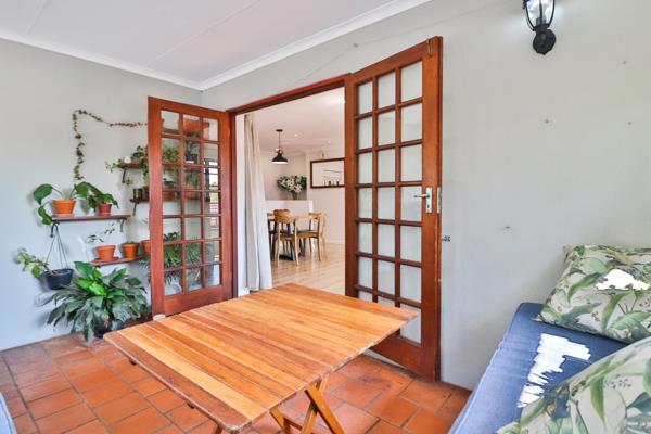 Opening the double doors to the veranda allows nature to arrive into the home. Fresh smells burst in, and you soon find yourself outside with a book or making some wors.