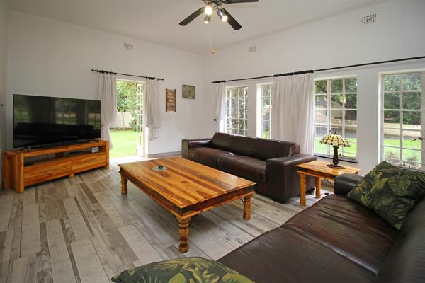 Open plan dining room & lounge with a wood burning fireplace, separate kitchen with an Island, granite tops & separate scullery and laundry room.