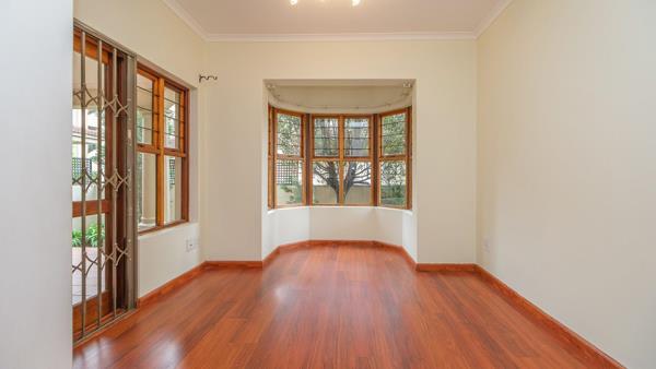 This is 127 m2 of spacious and secure urban living 3-bedroom sunny ground floor apartment. The property boasts an open plan living with clean lines, simplicity and bright space. The lounge overlooks a covered patio onto the fenced off garden with auspicious Leopard tree. The apartment has well-appointed kitchen with good size cupboards space and pantry, 2-under counter appliances plus double sing. 3 well-sized bedrooms with high ceilings and charming beautiful and practical bay windows. The comfortable main bedroom with main full bathroom en suite and with the direct access onto patio.