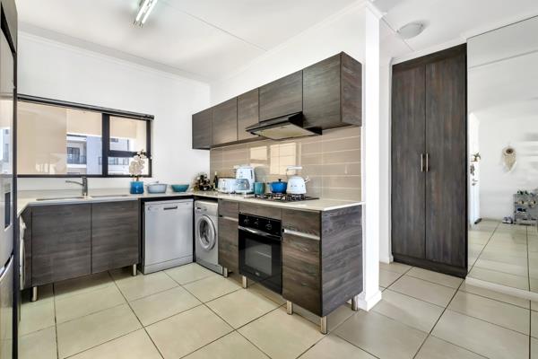 Enter into a comfortable open-plan lounge and dining area where a gorgeous feature mirror accentuates the feeling of space and light. Sliding doors open out to a substantial, semi-covered balcony running the full width of the apartment and creating the ideal space to bask in the sun or socialize with friends.