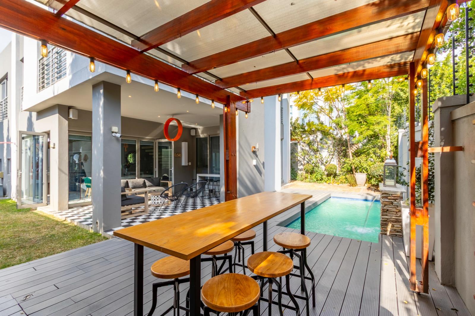 As you enter, you will be captivated by the quality finishes that define this home. The open plan living area, with feature fireplace, seamlessly transitions to a delightful patio, where you can host unforgettable gatherings, serving drinks from your private bar and utilising your designated braai area while you overlook the sparkling pool. This outdoor area is an entertainer''s dream, ideal for those warm South African evenings.