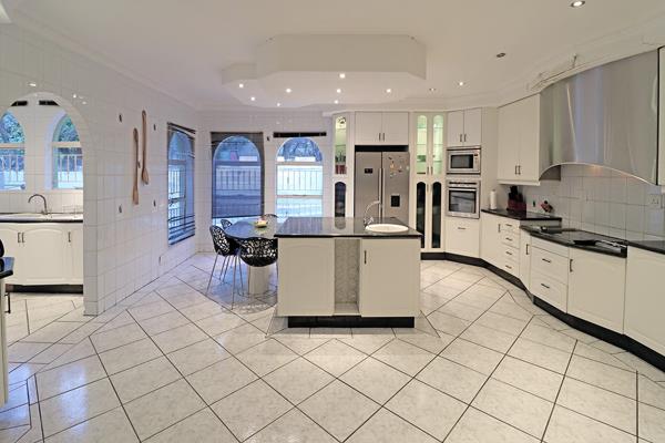 Located in a secure, access-controlled enclave. The grand entrance leads into the lounge and indulgent bar, then the open-plan dining room and kitchen with separate laundry and scullery, and also to a family room with a large study and the guest cloakroom.