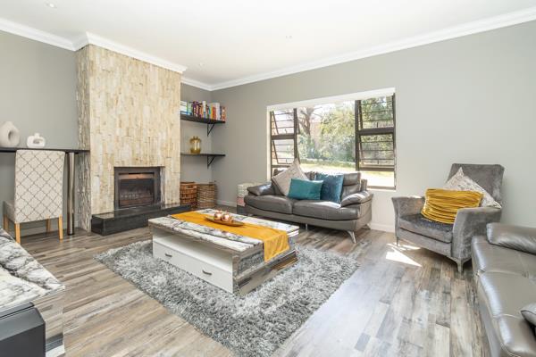 Inside, the home is both stylish and welcoming. The kitchen is well-appointed with granite countertops, SMEG gas hob and electric oven, breakfast counter, and informal eat-in space that connects to the garden. A separate scullery offers ample space for appliances. The open-plan dining room with Mors fireplace, the cozy lounge, and an additional TV/family room (also with a fireplace) create the perfect balance of openness and comfort.