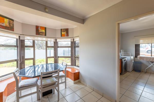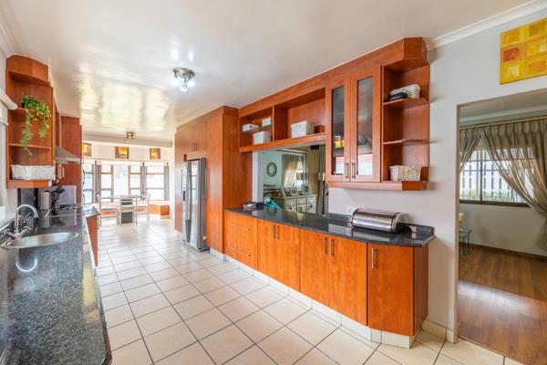 The homes heart lies in its multiple entertainment spaces, including a large, enclosed patio with a built-in bar and braai, another covered patio with louvered roof perfect for sunny afternoons, and a separate lapa ideal for laid-back gatherings with friends and family. All overlooking the heated pool.