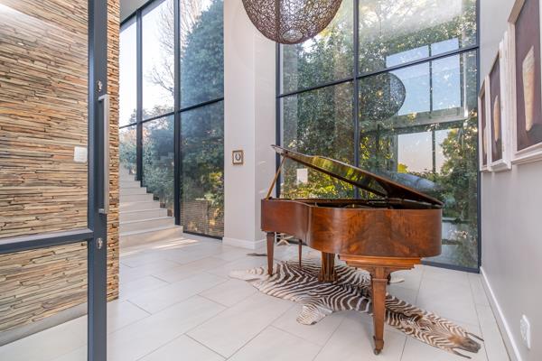 Designed by the renowned architect Kevin Els, this home optimizes luxury and panoramic views of the Sandton skyline.