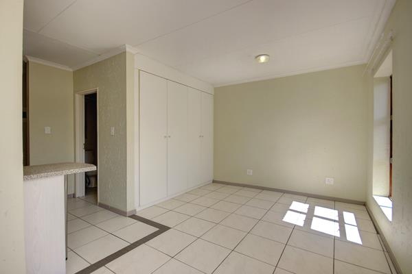Fabulous studio apartment (bachelor) not 1 bedroom. Bathroom (bathtub). Kitchen with practical layout and breakfast nook. Walk-in pantry. Covered balcony.
