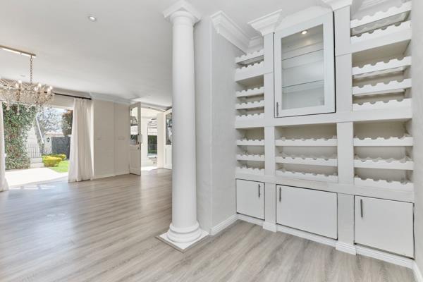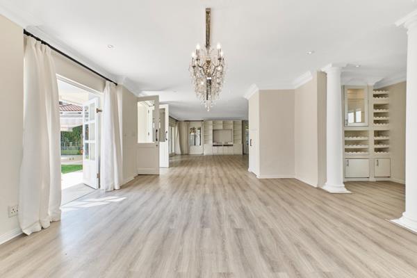 Ultra Spacious Open Plan Free Flowing Receptions Lounge / Diner Beautiful Chandelier & Morso Fireplace (Fitted Wine Rack & Wall Units) flowing out onto Covered and extended patio in perfectly manicured Garden (Computerised irrigation) & Sparkling Heated Pool with Built in Gas Braai Study with Aircon Guest Cloakroom Fitted Bar.