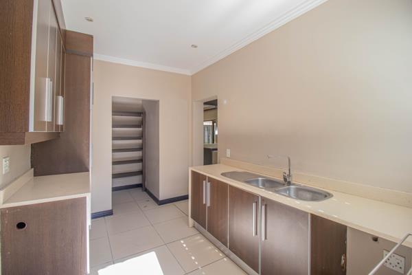 The modern kitchen is a chef''s dream, complete with a gas hob, ample cupboard space, and a scullery that leads to a private courtyard. An additional pantry and a second living area or TV room provide versatile living spaces for the whole family. The enclosed patio, with a built-in braai, overlooks the lush garden and inviting pool, making it the perfect spot for outdoor entertaining.