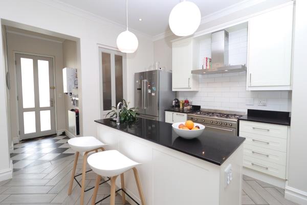 Walking into the entrance hall and onto Herringbone floors, a large beckoning space pulls you in. Soaring ceilings with flush downlighters set the tone as you head towards the lounge.