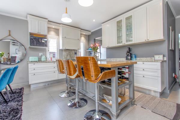 The double garage has ample built-in cupboards with a fitted laundry room.
