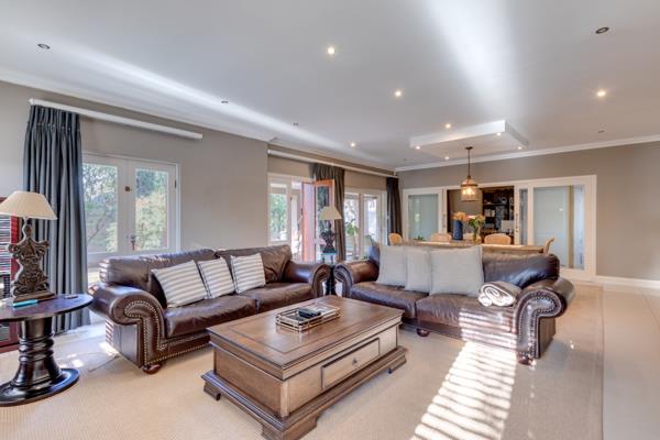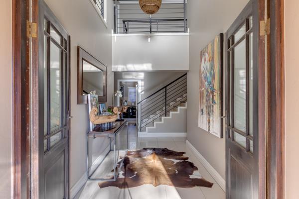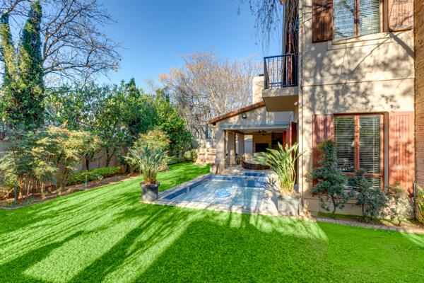 Offers from R5.35m - A secure, lock-up-and-go family home, ideally positioned within this small Estate of 6 homes in Bryanston East offering spacious and quality accommodation. Welcoming double volume entrance leading to open plan receptions with combustion fireplace opening to entertainers covered patio with built-in braai overlooking level lawns and pool. Well-appointed kitchen with Caesar-stone counter tops open to family room. 3 Sunny bedroom suites. 4th bedroom / study / pyjama lounge. 3.5 Bathrooms. Double garage. Staff accommodation. Excellent surity incl: CCTV and 24-Hour guard. Features incl: Wooden laminate flooring, underfloor heating, aircons, Solar back-up power (12 panels), 2200litres back-up water storage, wooden shutters, irrigation system. Seller asking R5.75m.