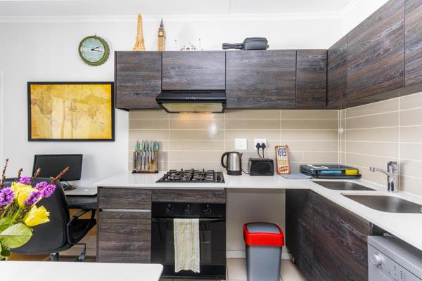 CALLING FIRST TIME BUYERS AND INVESTORS! This stylish 58sqm, top floor apartment at The Cambridge features quality finishes and plenty of BICs. The fully-fitted open-plan kitchen boasts elegant Caesarstone tops, a gas hob, an under counter oven, and an extractor fan. Three Defy ECO appliances are included - a fridge, dish washer and washing machine. The open-plan living area opens onto a spacious patio. Fibre- and DSTV-ready. Pre-paid electricity. Water, and gas is metered. The bedroom has an en-suite bathroom with a shower only.