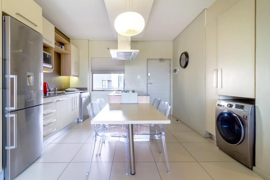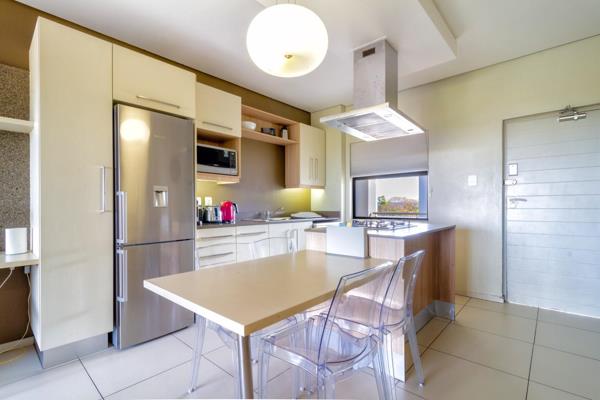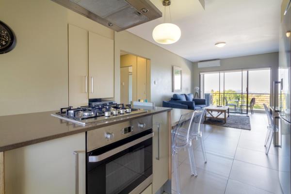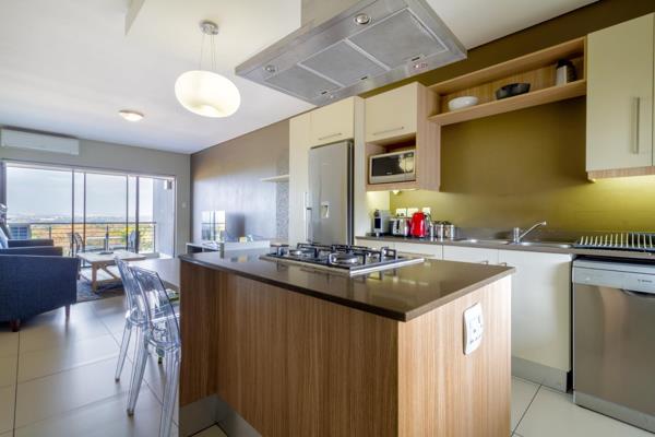 As you step inside, you will be greeted by a flawless, fully furnished unit that exudes elegance and sophistication. The kitchen and lounge is tastefully tiled, with laminated flooring in both bedrooms, providing a sleek and clean aesthetic throughout. The open-plan kitchen is a true masterpiece, featuring sparkling white built-in cupboards that offer ample storage space for all your culinary needs. The centerpiece of this culinary haven is the exquisite island, complete with a gas stove, which adds a touch of modernity and convenience to your cooking experience. Furthermore, there is under-counter space for two wet appliances, ensuring seamless functionality for your everyday tasks.