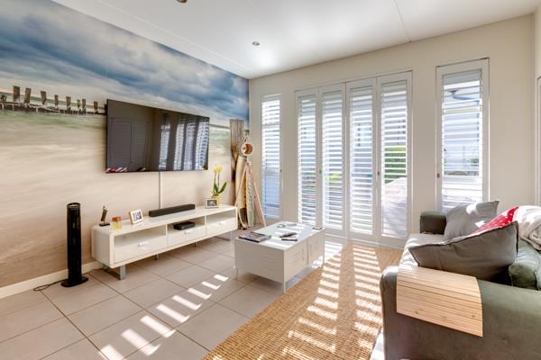 Upstairs has a pyjama lounge - currently set up as an office. Adjacent to this is two cozy en suite bedrooms. The main has an Aircon. The home is complimented with shutters through out.