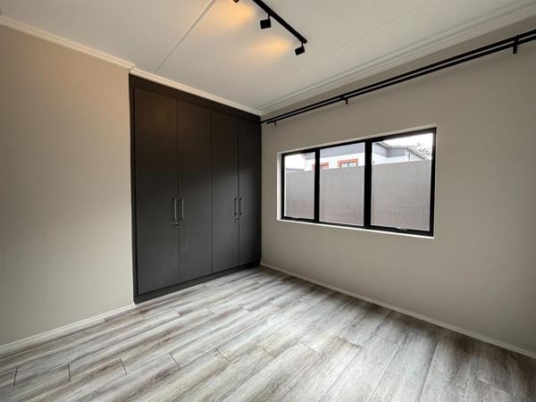 Both bedrooms are generously sized with built-in cupboards, including a main en-suite, while the second bathroom is finished with sleek, modern fittings. Two parking bays are included, with additional visitor parking available.