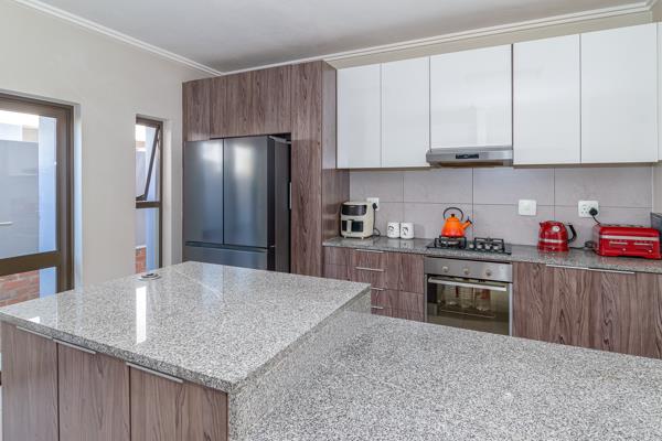 Double garage and domestic quarters complet this modern home.