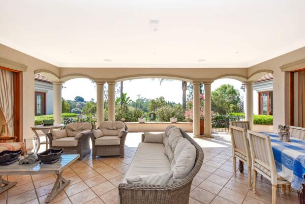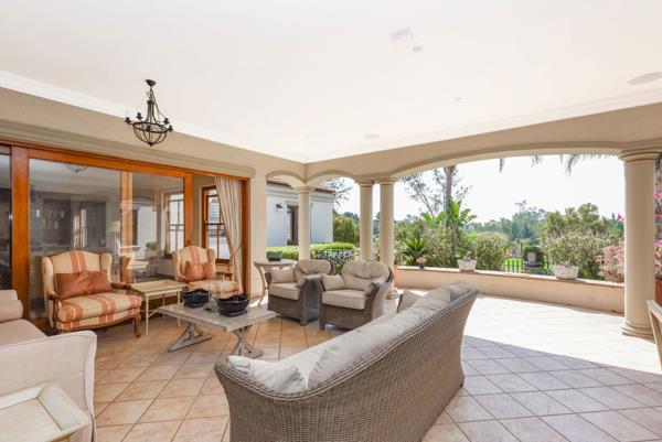 The entrance hall, family lounge, and dining area seamlessly open onto an expansive covered patio with a built-in gas braai, overlooking a beautifully landscaped garden and sparkling poolperfect for relaxed gatherings.