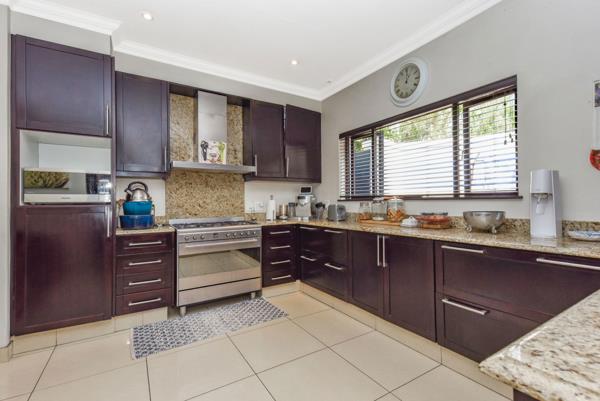 Exquisite Estate Sanctuary . Step into this modern and spacious family cluster home, perfectly situated within a secure estate. A grand double-volume entrance hall welcomes you into the home, setting the tone for refined living.