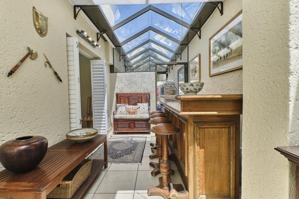 The lovely, well-appointed kitchen offers ample cupboard space, granite countertops, a gas hob, and skylights that fill the room with natural light and warmth. A courtyard with a covered laundry area and full domestic accommodation completes the functional layout.