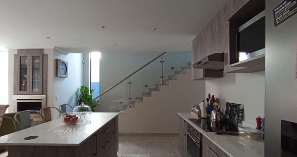 Discover an unparalleled lifestyle in this exquisite contemporary residence within a desirable Bryanston complex. The striking architectural design captivates with clean lines, a sophisticated neutral palette, and private balconies adorned with sleek glass railings. Integrated garages offer secure parking, while expansive windows and sliding doors invite abundant natural light, enhancing the home''s elegant kerb appeal.