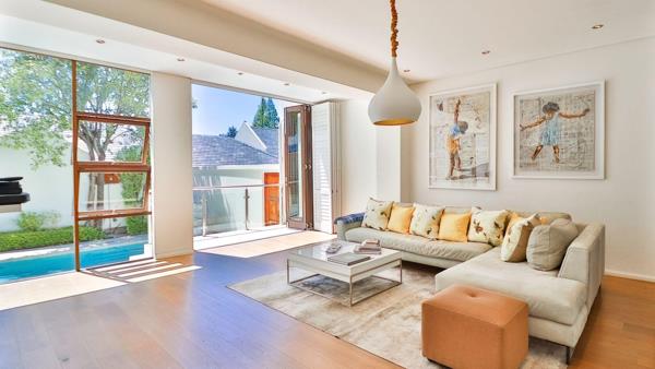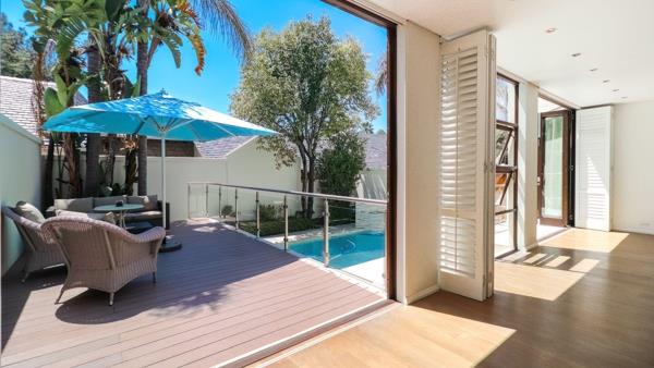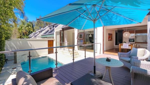 Discover this sophisticated and beautifully finished home tucked away in a peaceful, sought-after complex -- a true haven for families or professionals seeking space, style, and comfort. This immaculate residence features three spacious bedrooms and two and a half elegant bathrooms, offering modern convenience throughout. The stunning modern kitchen flows effortlessly into the lounge and TV room, creating a seamless space for relaxed living and entertaining. A Morso wood fireplace, designer lighting, and engineered oak flooring add warmth and luxury, while Plantation shutters and stacking doors open onto a sleek pool deck with a sparkling plunge pool -- perfect for sunny afternoons and weekend braais.