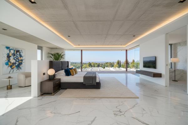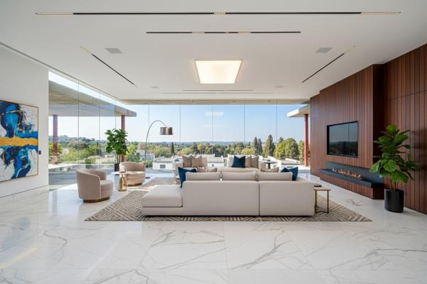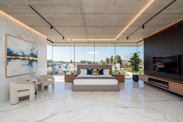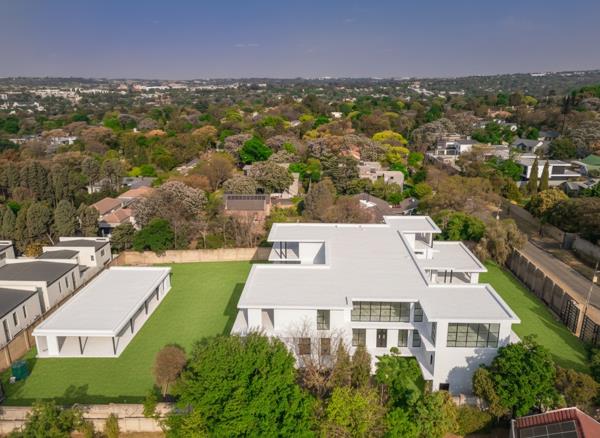 Rising from one of Bryanstons most exclusive and boomed-off enclaves, this architectural masterpiece stands proudly on a 4,084sqm fully walled stand, offering an unrivalled sense of privacy and scale. With a total building area of 2,441sqm, this visionary residence redefines modern luxury through bold geometry, vast glass faades, and a commanding architectural form. Every element - from the floating concrete slabs and cantilevered walkways to the double-volume glass entrance framed in steel - has been designed to impress. Expansive proportions flow seamlessly across three magnificent levels, each capturing breathtaking panoramic views over the lush Bryanston treetops.