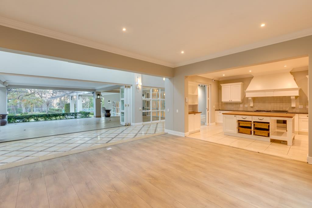 An exceptional ambassadorial mansion in the most prime location on almost 2 acres of manicured grounds with views over the Sandton skyline. Boasting all amenities synonymous with entertaining on a grand scale, there are 5 luxuriously appointed bedroom suites and a fitted study. This extended family home offers a theatre and bespoke bar and cellar, multiple formal and informal entertainment areas, a gym and spa. There is a gourmet social kitchen with top-of-the-line integrated appliances. There is a seamless indoor-outdoor flow to the entertainers covered patio and feature pool. The home offers a tennis/soccer field and an elevated lapa. There is a fully contained wfh / guest cottage comprising a kitchen, lounge/dining and bedroom en-suite. Dedicated guard house.