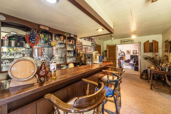 Double volume entrance hall leading onto four reception rooms including an impressive Bar room and a large lounge leading to a patio overlooking the mature garden and fenced off pool.