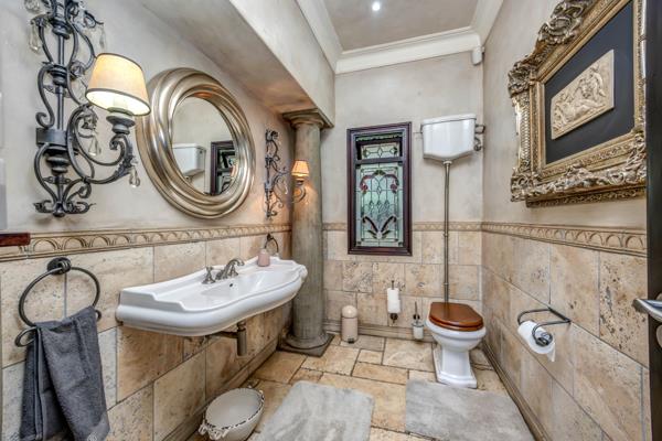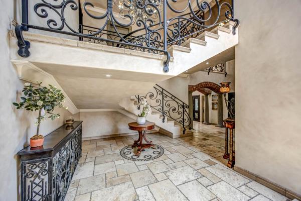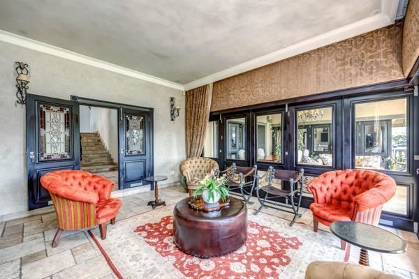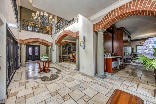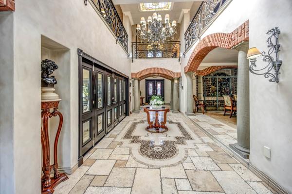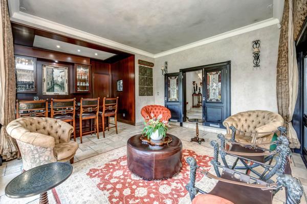 As you step through the grand double front doors, you are immediately greeted by soaring double-volume ceilings, striking stained glass windows and ceilings, and opulent chandeliers that set the tone for the elegance that flows throughout this home. The ground floor is designed with pure entertainment in mind. A private guest cloakroom and a serene study are set to the side for convenience and quiet, while the heart of the home a solid wooden, eat-in kitchen with a scullery serves as both a practical and beautiful space for culinary creations. Surrounding the kitchen, youll find a collection of living and entertainment areas, including a formal lounge with a cozy gas fireplace, a sophisticated dining room complete with a wine cellar, and a stylish lounge with a built-in, high-end bar. Each of these spaces opens seamlessly through stacker doors onto a sprawling, covered patio that overlooks a lush landscaped garden and a sparkling swimming pool. A state-of-the-art surround sound system ensures that entertaining guests is effortless and unforgettable.