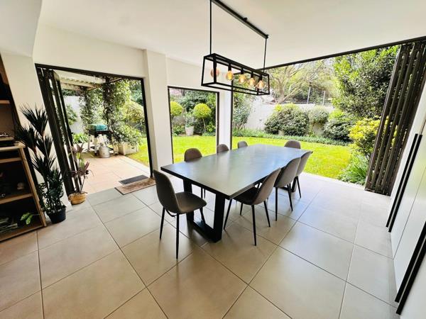 The apartments pice de rsistance is the seamless transition to the lush, green garden via the aluminium stacker doors. The tranquil atmosphere is enhanced by the sweet songs of birds, creating a peaceful oasis in the heart of the city.