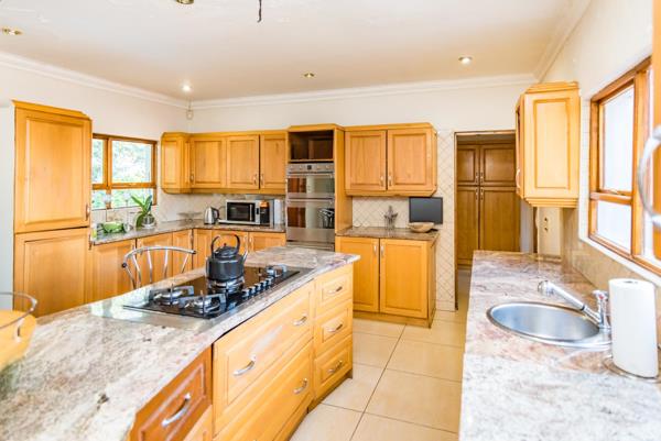 Featuring a sizeable kitchen with granite countertops and a scullery, this home is designed for both functionality and style. The three spacious living areas are perfect for a TV lounge, formal lounge, and dining room, making it ideal for a large family and entertaining guests.