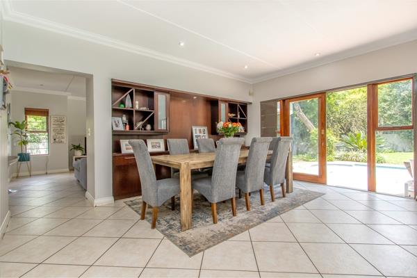 Entrance hall, separate lounge with fireplace, open plan family room & Dining room flowing to large patio, Fitted bar, Open plan kitchen - breakfast counter, scullery and separate laundry. 5 or 6 spacious bedrooms, 3 bathrooms, guest cloakroom, Patio & balcony. Pool. Double Garage. Visitors parking. Storage. Excellent Security This brilliant home must be seen to be appreciated. Many extra features. Serious seller wants to see offers.