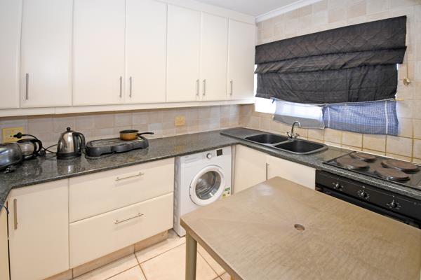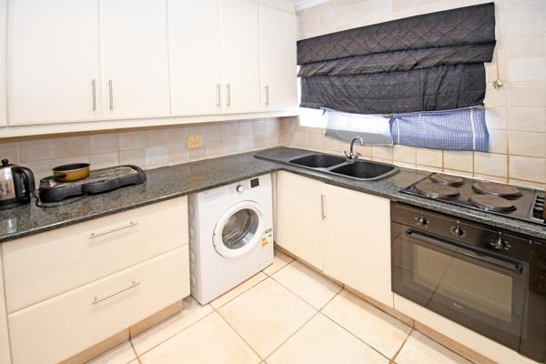 A recently renovated 2 bed 1 bath apartment. New tiles in the reception rooms. An open plan lounge, dining room that leads out onto a balcony. Main bedroom has extra storage room and extra set of cupboards that have also been added. The second bedroom with also new cupboards. Tiles thru'' the bedrooms as well. A nice size kitchen with space for washing machine and fridge, granite tops and a new hob and oven. Lock up garage which is automated. Plenty of parking for visitors and 24/7 guards. Close to all major freeways, shopping malls, places of worship and schools. A great starter unit.