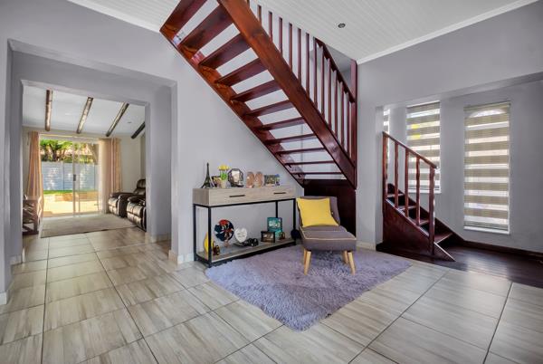 The property has a neatly tarred driveway, with a parking area for guests and a double automated garage.