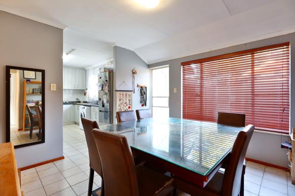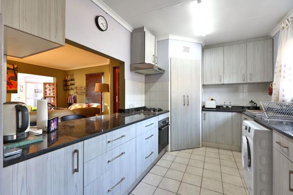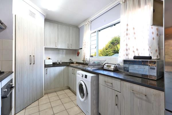 The dining area is very spacious and allows for direct access to the kitchen so that you are unhindered when enjoying your meals and family time. The kitchen features granite tops and a gas stove, as well as a corner pantry cupboard that ensures you have plenty of space for all your kitchen goodies. There is an exit to the backyard as well where one can find additional space for storage and a well to do Wendy house.