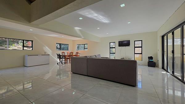 Originally built in a traditional thatch style, the home has begun a thoughtful modern expansion, including generous open-plan living areas that flow out onto a covered patio with a planned built-in braai ideal for entertaining. The large garden features a built-in boma and an entertainment lapa, with the tranquil sound of nature in the background.