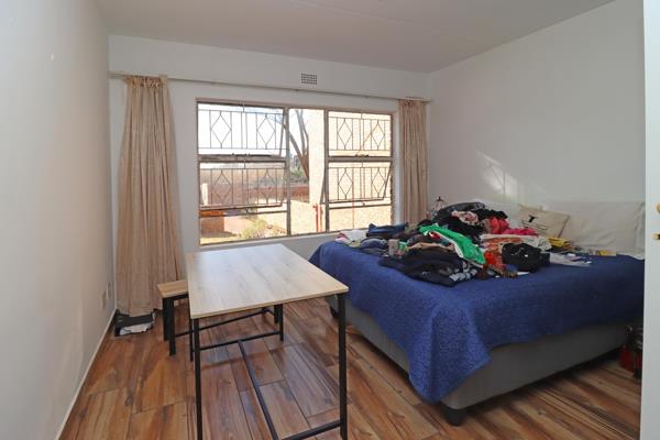 Unit offers a semi open plan kitchen with space for one under counter appliance and ample cupboard space. Combined lounge and dining room space with sliding door leading unto open patio and communal garden space. Two spacious bedrooms and a full bathroom.
