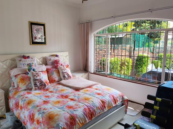 Beyond the interior, the property boasts a meticulously maintained and eclectic garden. Gravel pathways, diverse plantings, and decorative features, including a central fountain and various ornaments, create a unique and tranquil outdoor retreat. The property includes one garage and an additional parking space, ensuring convenience. Security is enhanced with security bars on windows and doors, contributing to a safe living environment within the complex. Buccleuch offers excellent access to major routes and amenities in the bustling Sandton area, making this an ideal location for urban living.