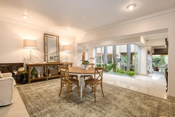 Practicality meets luxury with three garages leading directly into the home, excellent staff accommodation, solar geysers, underfloor heating, and top-tier security features including beams, American shutters, and roller shutters.