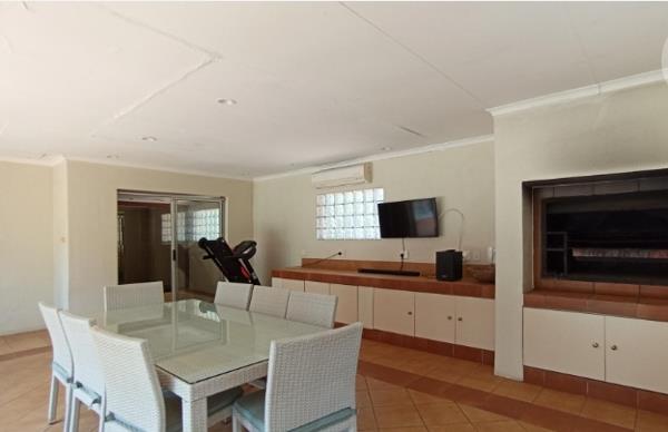 The home''s multiple living areas include a formal lounge, dining room, and cozy family room with a wood-burning fireplace. The enclosed entertainer''s patio, complete with built-in braai and jacuzzi, opens to a sparkling pool and lush landscaped garden, perfect for family gatherings and relaxation.