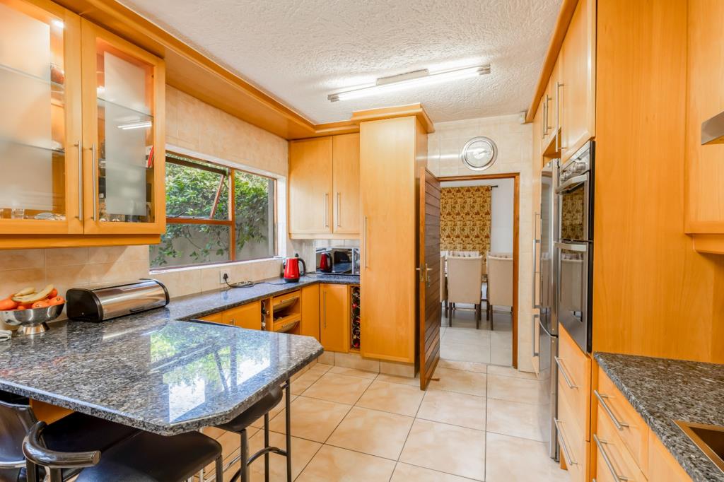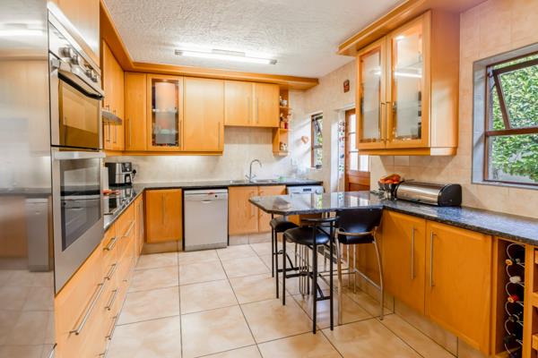 Enter via a tiled entrance hall where the automated double garage has direct access. The accommodation is both equally inviting and flooded with light. The modern kitchen with a separate scullery, blends practicality with efficiency and is adjacent to the entertainers dining room. The outdoor spaces extend the homes serene atmosphere offering a covered patio overlooking the sparkling pool, manicured garden and inviting entertainment areas. 3 well-appointed bedrooms exude tranquillity, the main suite is designed as a private retreat. A study / 4th bedroom is complete with built in cupboards. There are 2 bathrooms, mes as well as a guest toilet