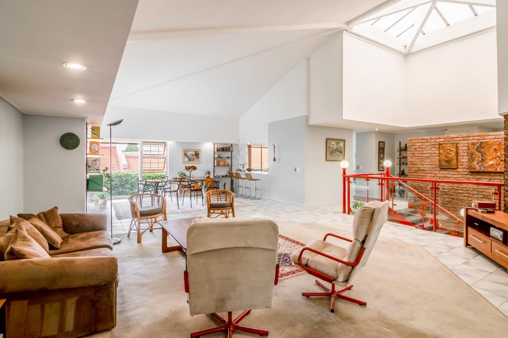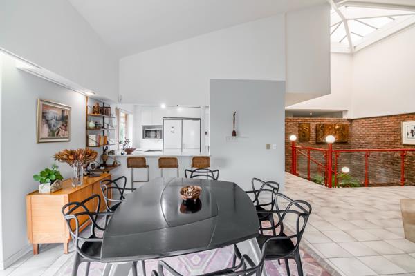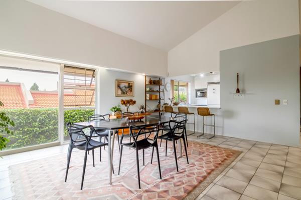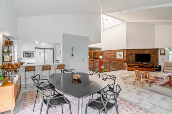 Step into a home where design and nature meet in perfect harmony. This unique, architecturally designed three-bedroom residence, with a large study,/4th bedroom, is a masterclass in space, light, and flow. 2 bathrooms, mes, plus a convenient guest toilet are on offer. The open-plan, spacious lounge/dining room have access to the kitchen via a breakfast bar. A separate scullery is tucked away. Staff accommodation with a bathroom is available and has its own secluded access.