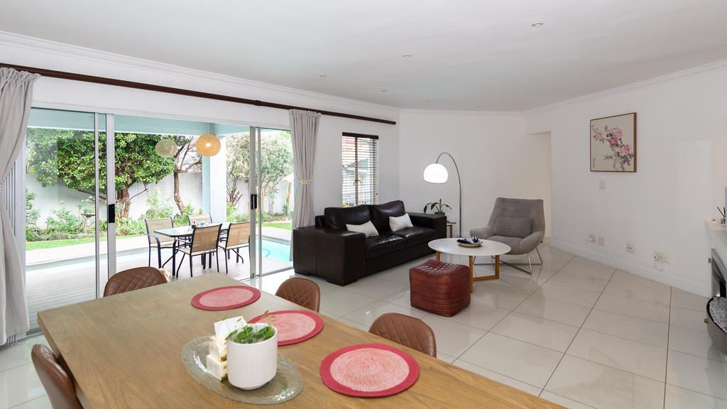 Perfectly positioned within sought after Hurlingham Manor, this spacious and light filled home offers the ideal blend of comfort, charm, and functionality. From the moment you walk in, youre welcomed by a sense of openness - tiled, sun drenched living spaces flow effortlessly out onto the entertainers patio, sparkling pool, and beautifully landscaped garden. The home offers both formal and informal living areas, with a gas fireplace serving each - perfect for creating a warm and inviting atmosphere in the cooler months. The formal dining area connects seamlessly to the formal lounge, creating an elegant space for entertaining. A versatile third bedroom on the one side of the home makes for an ideal guest suite or work from home office. The separate kitchen is well equipped with ample built in cupboards, generous preparation space, and a scullery accommodating two appliances. Down the bedroom wing, youll find a spacious second bedroom and a main suite featuring a beautifully renovated en-suite bathroom complete with bath, shower, double vanity, heated towel rail, and toilet. The main bedroom also enjoys abundant cupboard space. Adding to the homes appeal is a fully self-contained cottage with its own entrance and parking. The cottage includes a kitchen, living and dining area, a separate bedroom, and a modern bathroom - perfect for older children, extended family members, guests, or rental income. The security is excellent and an inverter system is installed, ensuring comfort and peace of mind during power outages. The property also offers a double garage, ample off-street parking and prepaid electricity. This is a truly charming, move in ready family home in the secure and family-friendly suburb of Hurlingham Manor - combining warmth, light, and practicality in one perfect package.