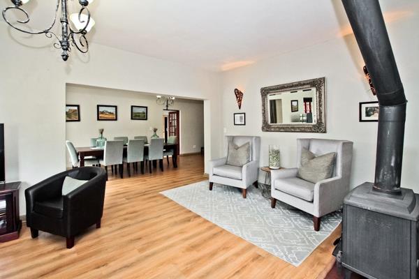 Enormous lounge with a fire place and formal dining room with wine cellar. Enclosed entertainers patio with separate bar and braai looks out onto sparkling pool and well-manicured garden.
