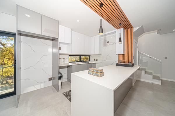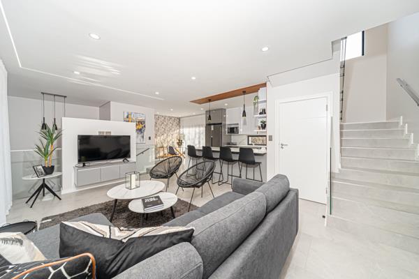 Practicality meets luxury with double garages, a laundry room, and staff accommodation included, ensuring convenience for modern families. The development is pet friendly and, with bond and transfer costs included, it presents exceptional value in Sandtons prime market.