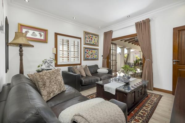 Upon entering one is struck by the vast open plan lounge & dining room incorporating the patio entertaining made easy! The kitchen and breakfast bar are perfectly situated for ease of living. Fitted with grade A appliances, the kitchen is a pleasure for the serious cook. The spacious patio has ample space for dining and relaxing further enhancing ones lifestyle.. 3 large en suite bedrooms - the luxurious main bedroom has a private lounge, dressing rooms and fantastic bathroom. Garaging for 4 cars , staff accommodation or a separate flat includes bedroom, lounge, storeroom, kitchenette plus bonus room (an optional 4th suite ) Features : 18 solar panels, 3 kva ( 5 ) batteries, inverter, alarm with external beams, 24hr security and very reasonable levies.