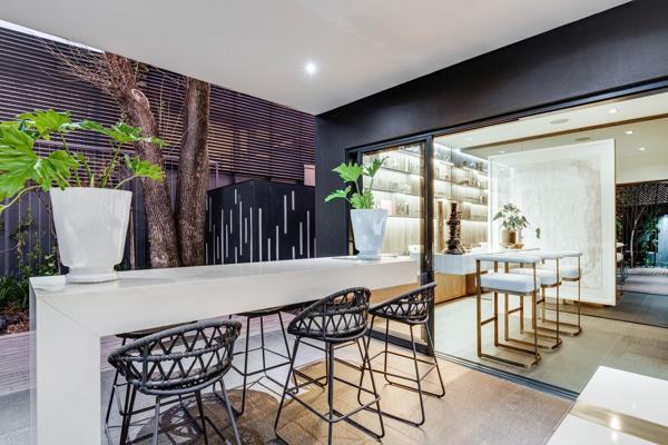 All features and finishes have been designed by masters in their field. The huge windows and high volumes allow for loads of light to flow through the open-plan design and across the light and bright reception rooms which include a formal lounge with glass sliding doors and a gas fireplace. A formal dining room large enough for at least 14 people and an open plan family from alongside the kitchen as well as a courtyard with Japanese maple trees. These rooms all open onto the garden and sparkling pool.