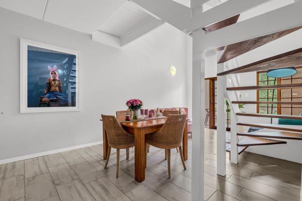 There is a serving surface between the dinning area and the well fitted kitchen, which has granite countertops and Bosch electric hob, oven and extra fan with space for a fridge, microwave and two under-counter appliances.